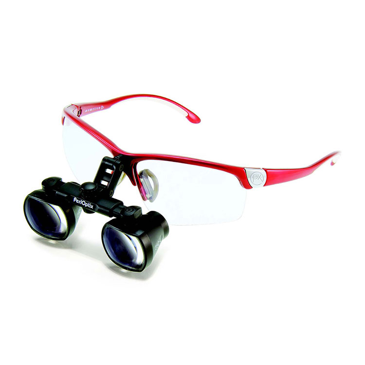 PeriOptix opklapbare panoramische loepbrillen geven een breed gezichtsveld dat niet te vinden is in de meeste andere lenzen. Het minimalistische ontwerp zorgt voor een verbeterde zichtbaarheid over de lens en de waterdichte lenzen garanderen een makkelijke reiniging en desinfectie.